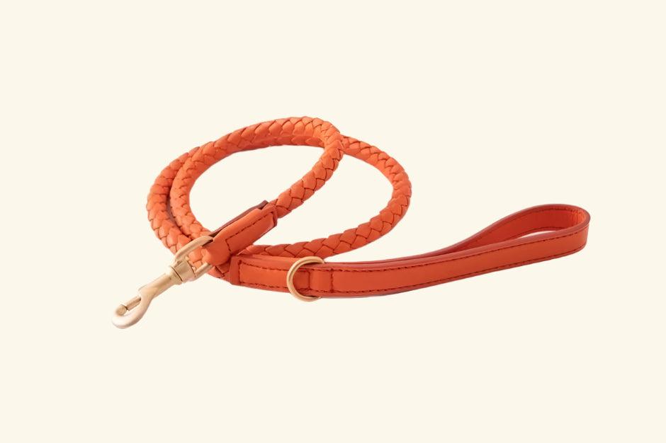 Available in 6 colours (Dusty Blue, Tuscan Yellow, Tangerine Orange, Lazy Taupe, Dromedary Brown and Cheeky Red) and in 2 diameters, the collars feature matte metal hardware and are made of braided Nappa leather: chosen for its softness and texture - as well as for the vegetable tanning it undergoes - the material’s own tactility must feel delicate on both the hand of the owner as well as the dog’s neck.
