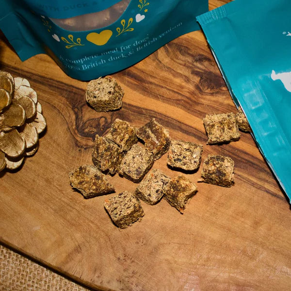 We have created a very special complete meal for your hounds to enjoy during the festivities. Our Christmas Dinner feast is made with delicious duck and British venison with a sprinkling of sweet cranberry - the perfect meal for festive dining for your pets.