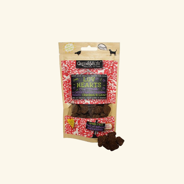 A perfect way to train or treat your dog. Luv Hearts are made from freshly prepared chicken and are tasty, grain free and rich in liver.